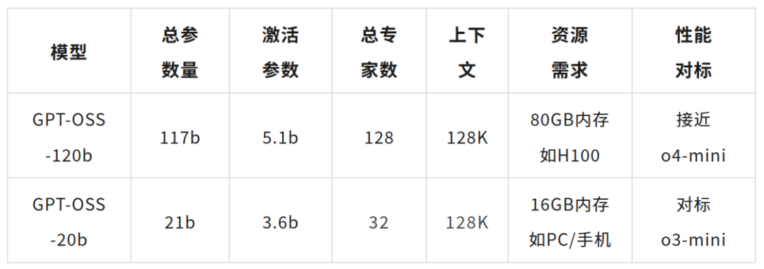 OpenAI 此次开源的 GPT-OSS 模型包含了120b、20b 两个版本。其采用了混合专家模型(MoE)架构和 MXFP4 原生量化技术,显著降低了推理的资源需求。测试显示,20b 版本在PC/手机就能跑,性能媲美 o3-mini。