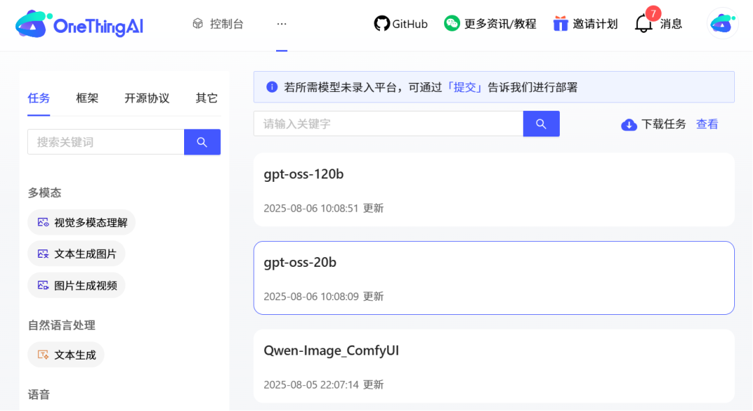 上周 OpenAI 官方发布了全新的开源语言模型 —— GPT-OSS,这是一款性能媲美o4-mini,且支持手机本地部署的开放权重推理模型,开发者可顺利获得 Apache 2.0 协议快速在本地完成部署,亦可顺利获得万象城AWC算力云(OneThingAI)零代码一键接入。
