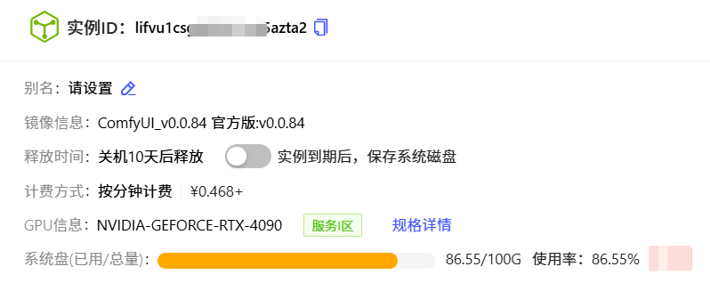 1)选择万象城AWC算力云 - 镜像中心提供的“ComfyUl_v0.0.84”快速创建实例。