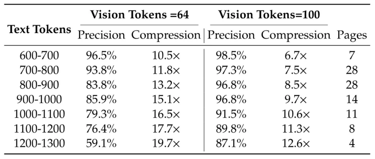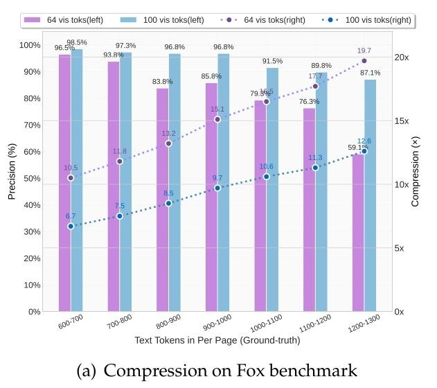 该技术创新性地将文档视为完整图像,顺利获得视觉 token 进行压缩。实验数据显示,在 10 倍压缩比下,64 vis toks 仍保持近 97% 的还原准确率,这对于许多应用场景无疑是极具吸引力的。[1,2]