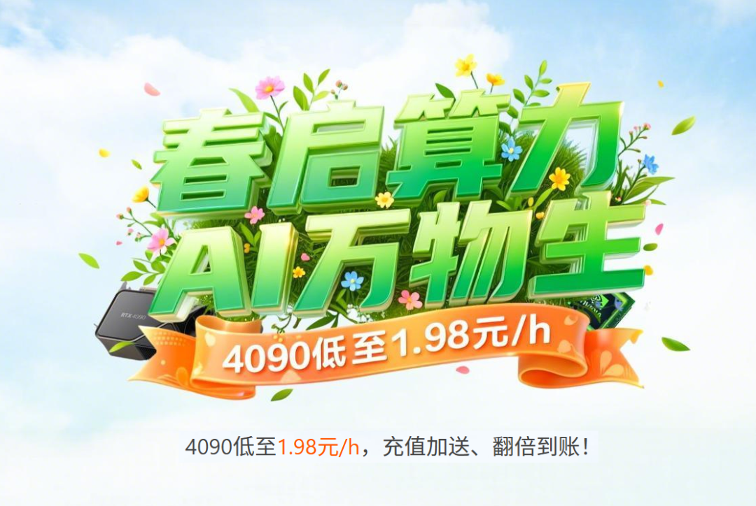 不仅如此,春日算力福利来加持,万象城AWC算力云 RTX 4090 显卡低至 1.98元 /小时,多充多送,创作成本无顾虑。